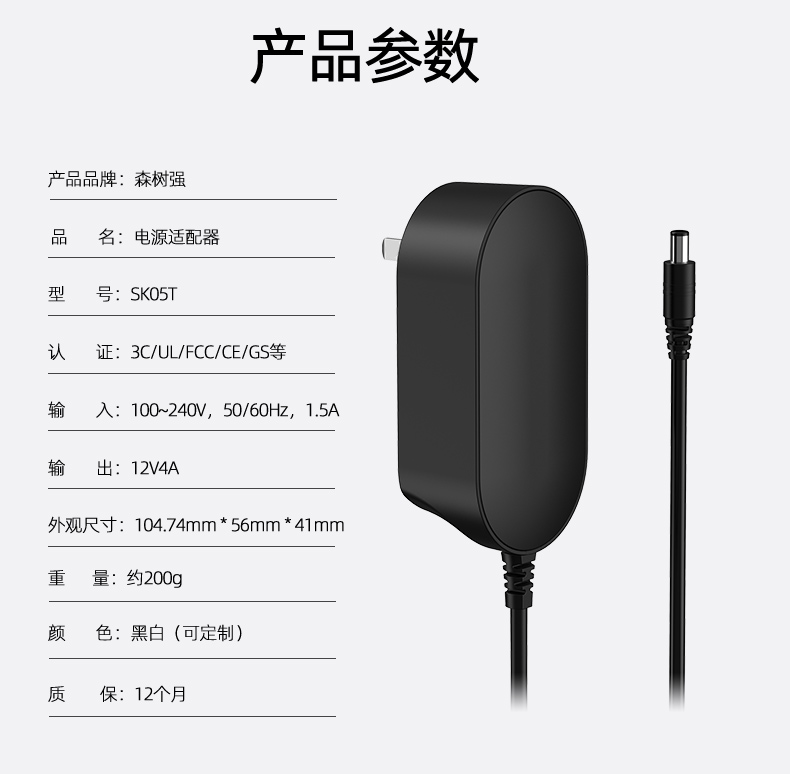 12V4A 48w电源适配器