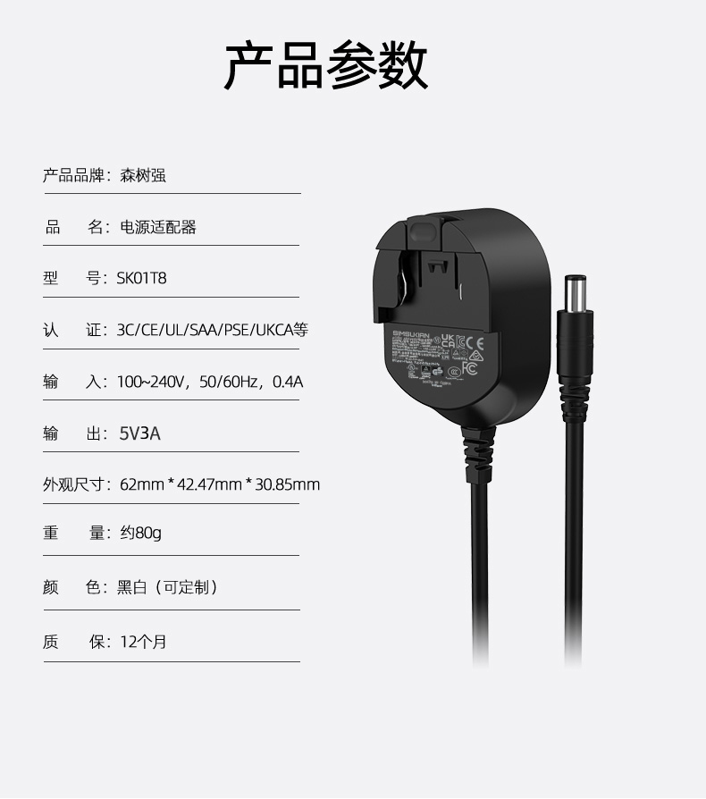 5V3A 转换头电源适配器
